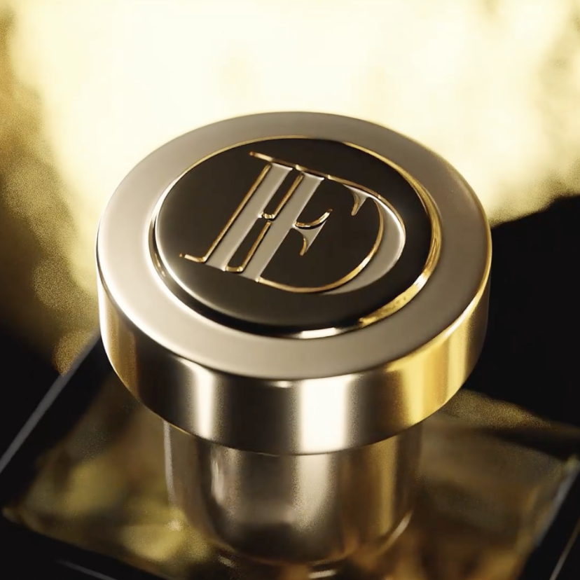 Base: Modern, golden-toned grandeur with sandalwood, patchouli, and amber
